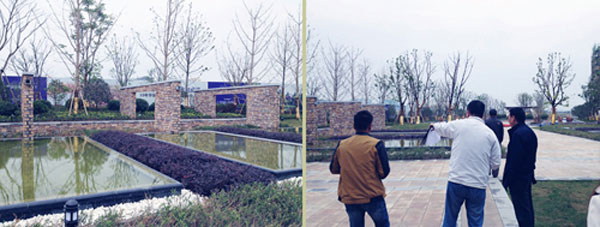 在視察中,朱春華董事長(zhǎng)指出,在設(shè)計(jì)方面,頤景灣畔項(xiàng)目較好的達(dá)成了目標(biāo),實(shí)際效果也獲得了甲方的贊許;在施工方面,此次為配合甲方開(kāi)盤(pán),大幅度的搶趕工程,項(xiàng)目部施工人員24小時(shí)連軸輪班,頂風(fēng)冒雨,歇人不歇工,充分體現(xiàn)了桃源園林的鐵軍精神,值得表?yè)P(yáng);在工程效果方面,喬木規(guī)格統(tǒng)一、標(biāo)準(zhǔn),硬景鋪裝平整、流暢,小品水景自然、靈動(dòng),現(xiàn)場(chǎng)表現(xiàn)彰顯了桃源園林的一貫高品質(zhì)。與此同時(shí),我們也必須正視因?yàn)榇蠓葥屭s工期的原因,致使依然有少部分細(xì)節(jié)仍存在瑕疵,比如材料來(lái)不及篩選退換而臨時(shí)替用的、隱蔽部位鋪裝工藝放松的、零星板材邊角有輕微破損的,這些細(xì)節(jié)必須堅(jiān)持桃源園林的標(biāo)準(zhǔn),不管難度多大、成本多少,必須整修到位,精益求精。